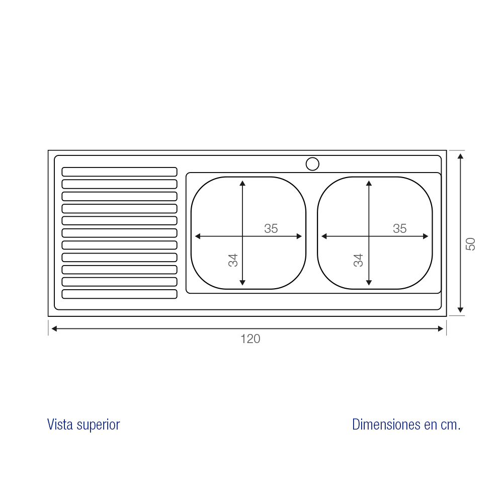 • Dimensiones: ancho 120 cm/ fondo 50 cm/ profundidad cubeta 16 cm