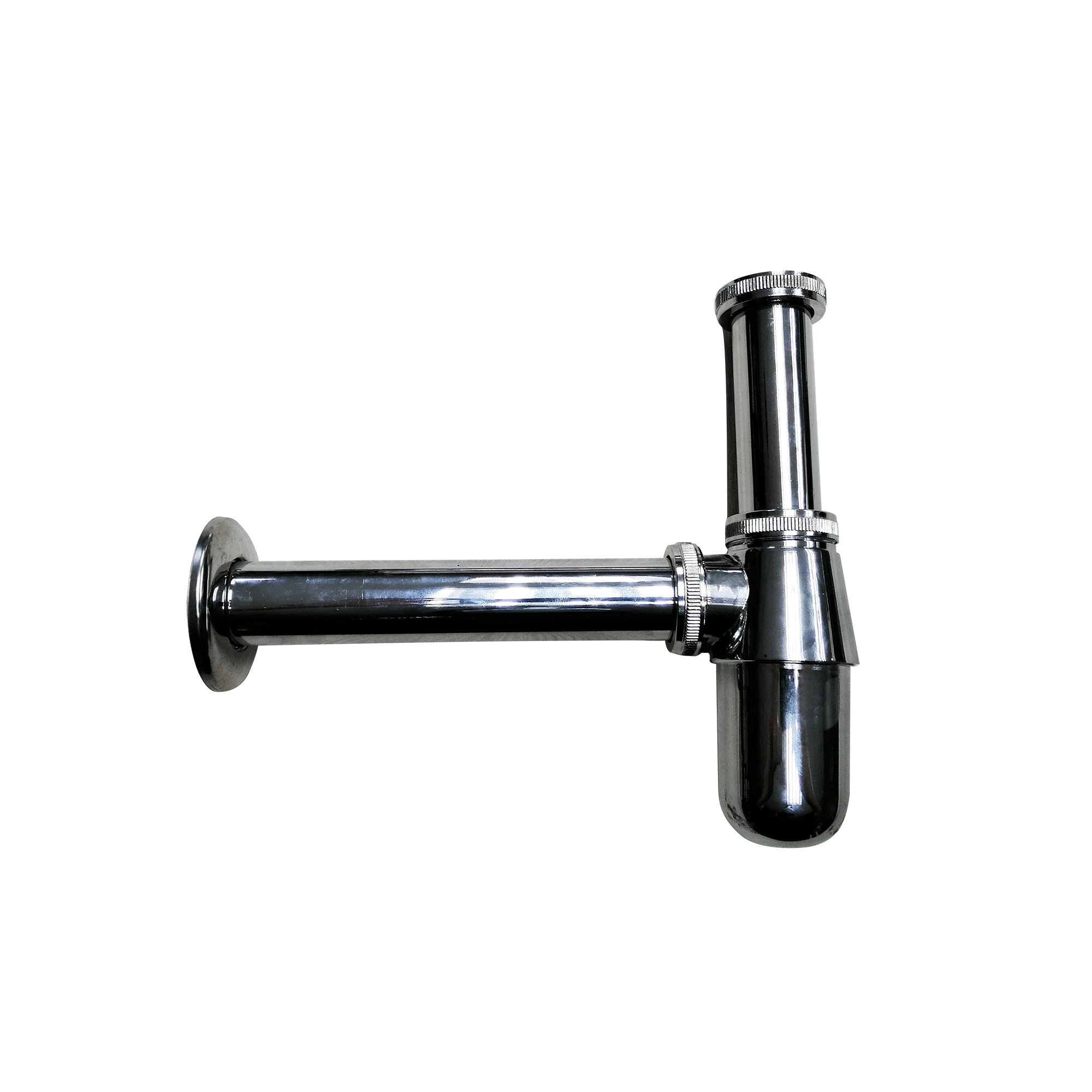 - Sifón botella metálico 1 1/4 salida recta 20 cm, fabricado en latón cromado
