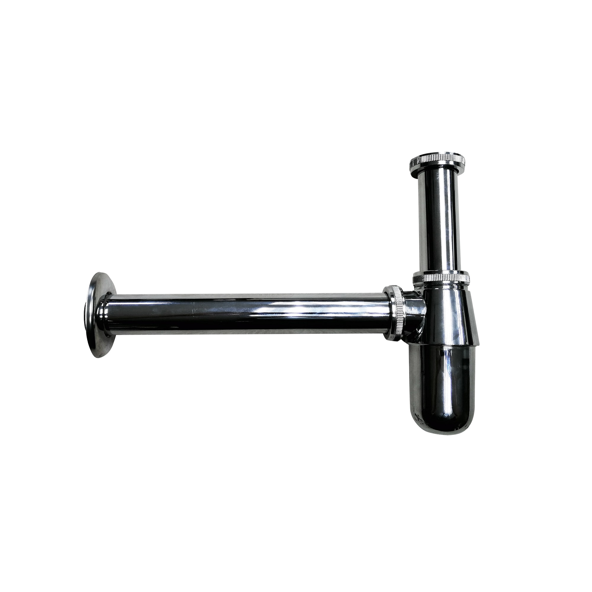 - Sifón botella metálico 1 1/4 salida recta 25 cm, fabricado en latón cromado